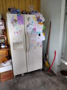 One issue of concern is all the papers attached to the refrigerator. They are symbolic representations of care through drawings and cards. This is similar to putting children’d’s drawings on refrigerators. John Wheatman in Meditations on Design talked about these objects getting respect. He recommends a few children’s drawings to be framed and I recommend all papers of good wishes to be put in a folder, to be read in quiet moments. [10]