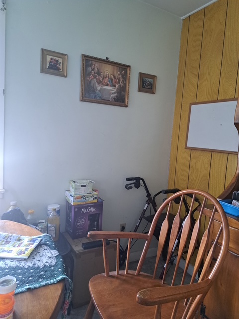 The few items near the washing machine on the corners of Walls One and Three were removed. Over the washing machine was hung a picture of the Last Supper.
