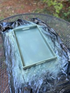 So we bought trays of various sizes and sprayed them sage green. Pill bottles, mail, cleaning supplies, and other materials were placed in trays. The Gestalt Law of Common Region could be used to contain clutter. Seven trays made 150 cluttery items disappear from the brain’s attention.