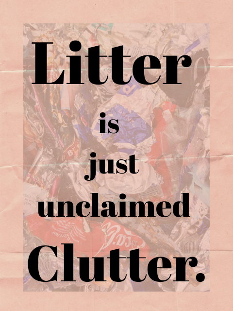 Our “wealth” of too many things causes us to go through occasional purges, adding to burgeoning landfills. Some of the discarded stuff does not make it to the dump but ends up in empty lots, the side of the road and on the streets. Clutter now becomes litter and in so many ways hurts the Earth.